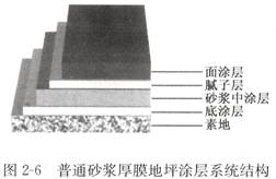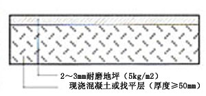 2 、普通砂漿厚膜地坪 (1) 涂層系統(tǒng)結(jié)構(gòu) 涂層系統(tǒng)結(jié)構(gòu)見(jiàn)圖 2 — 6 ( 3 )技術(shù)參數(shù)