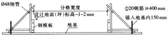 圖 2 在混凝土基層上的模板支設(shè)示意圖 ( 3)刷水泥漿或?yàn)⑺? 1)在地基上做耐磨地面前1~2h,應(yīng)對(duì)地基灑水,使地基處于濕潤(rùn)狀態(tài)。 2)在混凝土基層上做耐磨地面前,應(yīng)在已灑水濕潤(rùn)的基層表面刷一道水灰比為0.4~0.5的素水泥漿。 ( 4)澆筑找平層 1)在地基或混凝土基層上澆筑混凝土,當(dāng)厚度為50~100mm時(shí),可使用較重的鋼輥(鋼輥長(zhǎng)度應(yīng)寬于 模板500mm以上)多次反復(fù)滾壓,使地面混凝土密實(shí)。 2)當(dāng)厚度為100mm以上時(shí),宜使用插入式振動(dòng)棒振搗密實(shí),用長(zhǎng)刮尺整平,再用木抹子拍實(shí)搓平,表 面低洼處應(yīng)及時(shí)用混凝土補(bǔ)平。 3)利用真空吸水裝置將混凝土內(nèi)部的氣泡與自由水脫去。 ( 5)撒鋪骨料 在地面混凝土初凝前五六成干時(shí),鋪撒耐磨骨料。為保證耐磨骨料鋪撒均勻,撒料應(yīng)分多次進(jìn)行。第一次鋪撒總量的 1/2,用磨光機(jī)對(duì)混凝土地面進(jìn)行磨平、壓實(shí)、搓毛;再鋪撒總量的1/4,再次磨平、壓實(shí)、搓毛,在初凝前再鋪撒總量的1/4,并磨平、壓實(shí)、搓毛。 ( 6)地面抹光、拋光及養(yǎng)護(hù) 1)初凝后,用地坪抹光機(jī)對(duì)地面充分抹光、找平,并隨時(shí)檢查撒料抹光后的平整度,對(duì)低洼處及時(shí)補(bǔ) 料調(diào)整,并人工用鐵抹子壓實(shí)、抹光(平整度偏差控制在1mm內(nèi))。 2)終凝前,用磨光機(jī)分階段拋光3~4遍,直至表面細(xì)膩光亮。 3)耐磨地面施工結(jié)束12h后即進(jìn)入養(yǎng)護(hù)階段,首先應(yīng)涂刷專用養(yǎng)生液養(yǎng)護(hù),以防地面水分蒸發(fā)和色彩不均衡,3d后可灑水養(yǎng)護(hù),總養(yǎng)護(hù)時(shí)間不少于14d。嚴(yán)禁采用塑料薄膜等覆蓋養(yǎng)護(hù)。養(yǎng)護(hù)期間,應(yīng)封閉門 窗,防止灰塵和風(fēng)干開(kāi)裂。 ( 7)拆模及打蠟拋光 1)如設(shè)有模板,應(yīng)在耐磨面層完活后24h后拆模。 2)養(yǎng)護(hù)14d后,當(dāng)各工序完工不再上人時(shí),可打地板蠟并進(jìn)行拋光處理,要求面層細(xì)膩光滑光亮。 2、質(zhì)量通病及預(yù)防措施 ( 1)地面平整度不好,顏色不一致 1)原因:①未按標(biāo)高支設(shè)模板;②接槎處未處理好;③做找平層時(shí),低洼處未及時(shí)補(bǔ)料調(diào)整;④沒(méi)有分次撒料;⑤覆蓋塑料薄膜等養(yǎng)護(hù)后導(dǎo)致地面水分揮發(fā)不均勻。 2)預(yù)防措施:①在房間四周彈設(shè)標(biāo)高線和在錨入地基的鋼釬上抄平,按標(biāo)高及工藝要求支設(shè)模板,并用水準(zhǔn)儀復(fù)核模板(或玻璃條)上平標(biāo)高;②接槎處應(yīng)預(yù)先鑿毛剔平,澆筑新混凝土?xí)r應(yīng)注意與已澆筑地面水平統(tǒng)一;③隨時(shí)檢查撒料抹光后的平整度,對(duì)低洼處應(yīng)及時(shí)補(bǔ)料調(diào)整,用鐵抹子壓實(shí)、抹光;④撒料應(yīng)分多次進(jìn)行;⑤用水壺分次灑水養(yǎng)護(hù)(間隔2~3h),嚴(yán)禁覆蓋養(yǎng)護(hù)。 ( 2)地面發(fā)生裂紋 1)原因:①混凝土坍落度過(guò)大;②分格間距過(guò)大或未分格;③混凝土砂石級(jí)配不好;④振搗不密實(shí);⑤未按要求充分搓毛、抹光;⑥養(yǎng)護(hù)不及時(shí)。 2)預(yù)防措施:①現(xiàn)場(chǎng)拌制的混凝土坍落度應(yīng)控制在70~90mm之內(nèi),商品混凝土坍落度應(yīng)控制在110~130mm內(nèi),嚴(yán)格控制水灰比;②分格寬度按要求設(shè)置,分格面積不應(yīng)大于50m 2 ;③選擇級(jí)配良好的砂石;④使用較重的鋼輥和插入式振動(dòng)棒多次反復(fù)滾壓振搗密實(shí);⑤用磨光機(jī)和地坪抹光機(jī)對(duì)地面充分搓毛、抹光、找平,對(duì)機(jī)械不能施工的邊角部位采用鐵抹子壓實(shí)、抹光;⑥耐磨地面施工結(jié)束12h后立刻涂刷專用養(yǎng)生液養(yǎng)護(hù)。 ( 3)地面空鼓 1)原因:①地基不堅(jiān)實(shí);②做地面前未灑水或刷水泥漿。 2)預(yù)防措施:①地基土的壓實(shí)應(yīng)符合設(shè)計(jì)要求及施工規(guī)范規(guī)定,平整度應(yīng)符合規(guī)范要求;②對(duì)地基灑水,使其處于濕潤(rùn)狀態(tài),對(duì)混凝土基層表面刷素水泥漿并涂刷均勻;當(dāng)先撒水泥再灑水用笤帚掃漿時(shí),應(yīng)防止留有干水泥團(tuán)。 ( 4)起砂或起皮、麻面 1)原因:①未很好搓毛、抹光;②養(yǎng)護(hù)時(shí)間不夠。 2)預(yù)防措施:①用磨光機(jī)充分磨平、壓實(shí)、搓毛不少于3遍,用地坪抹光機(jī)對(duì)地面充分抹光、找平不少于3遍;②養(yǎng)護(hù)時(shí)間不少于14d。 [應(yīng)用實(shí)例4] 耐磨地面施工 工業(yè)廠房建筑面積 4219m 2 ,主要用于生產(chǎn)高壓電氣產(chǎn)品,采用特殊礦物骨料耐磨地面,以滿足生產(chǎn)與工藝的需要。 1、地面構(gòu)造 采用礦物骨料耐磨地面材料作為廠房地面面層,顏色為重慶灰。按該材料施工要求,地面構(gòu)造自上而下為礦物骨料耐磨地面材料 (重慶灰)→40mm厚C25細(xì)石混凝土找平層→150mm厚C25混凝土層→200mm厚塊石灌砂墊層→素土夯實(shí)。 2、施工準(zhǔn)備 ( 1)材料準(zhǔn)備 1) 根據(jù)礦物骨料耐磨地面材料的標(biāo)準(zhǔn)用量(4~5kg/m 2 ),加上一定的富余量訂購(gòu)材料,于地面施工前一周進(jìn)場(chǎng)。材料進(jìn)場(chǎng)后,應(yīng)在非常干燥密閉的環(huán)境下儲(chǔ)存。 2) 按施工作業(yè)面積配備地面養(yǎng)護(