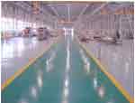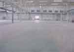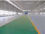 2、施工機(jī)具 除常規(guī)混凝土地坪使用的振搗設(shè)備外,需另備以下機(jī)具。 ( 1)除水工具:真空吸水泵或一般塑料管。 ( 2)整體抹光機(jī):抹光機(jī)加圓盤時(shí)主要是起木(鋼)抹作用,用以去除混凝土表面浮漿及整平;卸下圓盤裝上三葉鋼片,可進(jìn)行地坪壓光(鋼片角度可調(diào)整)。 3、施工工藝流程 混凝土澆筑并整平→抹光機(jī)振實(shí)、刮平→第一次鋪撒金剛砂復(fù)合材料→抹光機(jī)揉壓、抹平→第二次撒金剛砂復(fù)合材料→抹光機(jī)揉壓、抹平→邊角壓光→整體抹平壓光→養(yǎng)護(hù)。 4、基層混凝土施工注意事項(xiàng) ( 1)應(yīng)確保混凝土的水泥用量及強(qiáng)度,控制粉煤灰摻量。混凝土用機(jī)械振搗,采用中砂,嚴(yán)禁用海砂及超細(xì)砂,含泥量不大于3%。 ( 2)嚴(yán)格控制混凝土水灰比,杜絕為方便施工而摻水過(guò)多,水灰比宜為0.5 ± 0.05。 ( 3)混凝土每天的澆筑面積應(yīng)控制在800m 2 以下,支邊模時(shí)用鋼模(刷脫模劑)分倉(cāng)。分倉(cāng)不直時(shí),應(yīng)在下次施工前用切縫機(jī)彈線修正后再澆筑混凝土,縫應(yīng)與地坪成型后的分倉(cāng)縫位置相一致。 ( 4)注意混凝土施工塊的邊角部位應(yīng)反復(fù)振搗,保證密實(shí),再用木抹子人工拍漿。 ( 5)混凝土厚度應(yīng)不小于80mm,灰餅打點(diǎn)標(biāo)高必須精確,嚴(yán)格控制邊模板的整體標(biāo)高。 ( 6)冬期施工時(shí)環(huán)境溫度應(yīng)高于5℃,溫度較低時(shí)混凝土內(nèi)應(yīng)適當(dāng)摻加早強(qiáng)劑。 5、耐磨層施工 ( 1)基層混凝土初凝時(shí)(約3~4h),即可進(jìn)行耐磨地坪施工,先在抹光機(jī)上安裝圓盤,整體打磨混凝土并從周邊逐漸向內(nèi)收抹,起到平整和提漿作用,平整度偏差控制在2m范圍內(nèi)不超過(guò)3mm。 ( 2)第一次鋪撒金剛砂硬化劑的時(shí)間須嚴(yán)格控制,鋪撒過(guò)早會(huì)使金剛砂沉人混凝土,影響表面強(qiáng)度;鋪撒太遲,混凝土已經(jīng)凝固,不能與混凝土粘結(jié)而起不到應(yīng)有的效果,一般在腳踩下陷不超過(guò)5mm時(shí)開(kāi)始鋪撒第一次。墻柱及靠近門、模板邊等部位的混凝土失水較快,應(yīng)先鋪撒。 ( 3)第一次將2/3金剛砂硬化劑材料均勻撒布在混凝土表面(不均勻處用刮板刮勻);待材料吸收混凝土中的水分、表面出現(xiàn)返潮顏色變灰暗后,即開(kāi)始第一次抹平。采用裝圓盤的抹光機(jī)碾磨分散,使其與基層混凝土漿結(jié)合在一起,注意不要搓抹過(guò)度。 ( 4)隨即將余下的1/3料均勻撒布在混凝土表面,撒鋪方向與第一次垂直,進(jìn)行第二次抹平工作,最后用裝刀片的抹光機(jī)完成抹光工作。注意隨混凝土凝固時(shí)間調(diào)整刀片傾斜角度(轉(zhuǎn)速及角度視硬化情況調(diào)整),抹光機(jī)作業(yè)時(shí)應(yīng)縱橫交錯(cuò)(3次以上)進(jìn)行。邊角部位可采用人工鋼抹子抹光。 ( 5)耐磨地坪混凝土終凝后即開(kāi)始養(yǎng)護(hù),在太陽(yáng)直射處可用專用養(yǎng)護(hù)劑,在地下室等陽(yáng)光照射不到處可澆水養(yǎng)護(hù),養(yǎng)護(hù)時(shí)間7d以上。 ( 6)抹光機(jī)抹光后,面層若有抹紋可用鋼抹子進(jìn)行有序同向的人工壓光。 ( 7)耐磨地坪完成24h內(nèi)即可拆邊模,拆模后邊緣不齊處可用切割機(jī)切齊。 6、切縫 硬化劑地面施工完成 7d后,按結(jié)構(gòu)設(shè)計(jì)要求鋸切收縮縫(類似于混凝土路面切縫),縫深20mm左右。對(duì)混凝土框架結(jié)構(gòu),可按柱網(wǎng)尺寸切縫,亦可按業(yè)主意圖切縫,填縫材料可采用瀝青、硅膠等。 7、修補(bǔ)作法: 若硬化劑地面損壞,可采用兩種方式修補(bǔ)。 ( 1)局部破損可用丁苯乳膠加水拌和篩除骨料的硬化劑材料配制的膠泥刮膩?zhàn)有扪a(bǔ)。將破損區(qū)清理干凈,充分浸水潤(rùn)濕,再用丁苯乳膠加水乳液進(jìn)行涂刷。 ( 2)較大面積破損可根據(jù)需要畫(huà)線鋸切,鑿掉面層及部分基層混凝土,再清理潤(rùn)濕,掃素水泥漿,澆搗混凝土,最后施工硬化劑面層。 8、注意事項(xiàng)及質(zhì)量驗(yàn)收 ( 1)外觀質(zhì)量及表面平整度應(yīng)符合建筑地面工程施工質(zhì)量驗(yàn)收規(guī)范中外觀質(zhì)量的驗(yàn)收標(biāo)準(zhǔn)。由于磨光 后的地坪表面非常光滑,車庫(kù)的行車道部位須做橡膠(或其他材料)止滑坎。 ( 2)抗沖擊性能檢查:對(duì)齡期28d的混凝土采用重2250g鋼球,分別從1m、2m高處自由落下沖擊耐磨地面。墜落高度為1m時(shí),凹坑直徑應(yīng)小于或等于12.0mm,深度小于或等于0.30mm;墜落高度為2m時(shí),凹坑直徑應(yīng)小于或等于14.0mm,深度小于或等于0.50mm;地面硬度應(yīng)符合要求。 ( 3)金剛砂耐磨材料一般嵌入混凝土3mm深形成硬化層,可根據(jù)業(yè)主要求做成水泥原色、綠色、黃色 等不同顏色。在深圳地區(qū)采用該地面會(huì)增加造價(jià)14~15元/m 2 ,其中人工費(fèi)3元/m 2 左右,金剛砂材料9元/m 2 左右(按5kg/m計(jì)算),顏料2~3元/m 2 。 [應(yīng)用實(shí)例2] 耐磨彩色地面硬化劑施工工藝