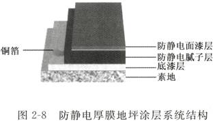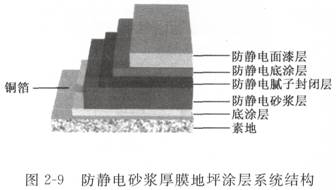2 、防靜電砂漿厚膜地坪簡(jiǎn)介 (1) 涂層系統(tǒng)結(jié)構(gòu) 涂層系統(tǒng)結(jié)構(gòu)見(jiàn)圖 2 — 9 (2) 涂層特點(diǎn) (3) 技術(shù)參數(shù)