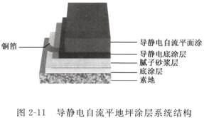 4 、導(dǎo)靜電自流平地坪 (1) 涂層系統(tǒng)結(jié)構(gòu) 涂層系統(tǒng)結(jié)構(gòu)見(jiàn)圖 2 — 11 ( 2 )涂層特點(diǎn) (3) 技術(shù)參數(shù)