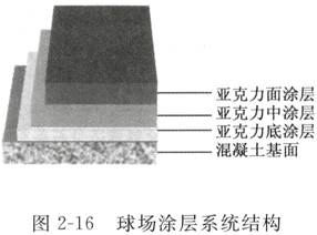 4 、施工方案 (1) 球場(chǎng)涂層系統(tǒng)結(jié)構(gòu) 球場(chǎng)涂層系統(tǒng)結(jié)構(gòu)見(jiàn)圖 2 — 16 (2) 亞克力球場(chǎng)施工步驟 ( 總厚度約 1.0mm ) 八、環(huán)氧磨石地坪設(shè)計(jì) 3 、技術(shù)參數(shù)