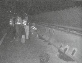混凝土修補施工示例 4 :修補砂漿在高架橋防護欄混凝土上的修補應(yīng)用。 |