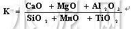另外,礦渣化學成分中堿性氧化物與酸性氧化物之比值Mo,稱之為:堿性系數。