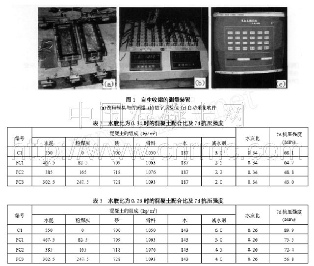[關(guān)鍵詞] 粉煤灰;自生收縮;等水膠比;等強度