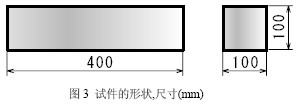 試件為尺寸100 mm×100 mm×400 mm 的長方體, 詳細見圖3, 試件共制成12 組, 再生混凝土試件6 組, 對比用的普通混凝土試件6 組。