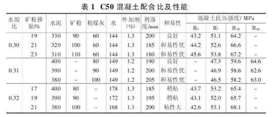 2.3混凝土配合比及性能試驗(表1)