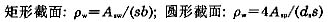 式中:ƒyd是鋼筋的屈服設計強度;ƒcd是混凝土的設計校體強度;ρw是含箍率,根據下式來定義: