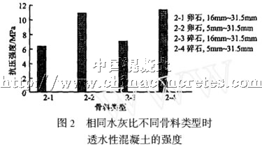 本文通過試驗,研究了水灰比、粗骨料的種類和級配、膠骨比、礦物摻合料以及其它增強材料對透水性混凝土材料強度的影響,試驗還測定了透水性混凝土的透水性。