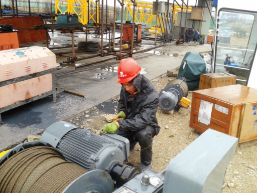 2013年10月,寧夏回族客戶張先生的一臺塔機(jī)出現(xiàn)了問題,他們自己組裝的塔機(jī)電機(jī)空轉(zhuǎn)、不能運(yùn)作。楊工收到求助電話后,趕緊坐早班火車從銀川趕往客戶設(shè)備所在地——一個(gè)偏遠(yuǎn)的山區(qū)工地,為客戶檢修設(shè)備。經(jīng)過檢測,楊文通確定是小車電機(jī)軸斷裂導(dǎo)致小車不走,最好的處理方法是要把斷軸取出來,重新?lián)Q上新的電機(jī),這實(shí)在不是一項(xiàng)輕松的任務(wù),但是為了客戶的利益,楊文通說干就干。楊工讓司機(jī)和工地人員把電機(jī)抬起來固定好,然后自己爬到電機(jī)下把電機(jī)上的螺絲、卷筒以及減速機(jī)都一一拆下來。經(jīng)過一個(gè)小時(shí)的努力,他才順利取出斷軸,完成全部拆卸工作后已經(jīng)到下午兩點(diǎn)。顧不上吃午飯的楊文通緊接著趕緊調(diào)撥新的電機(jī),然后把新電機(jī)與減速機(jī)重新抬上10幾米的空中。因?yàn)楣さ厝耸植粔颍挥幸粋€(gè)司機(jī)幫忙,楊文通只能把電機(jī)與減速機(jī)分批次沿標(biāo)準(zhǔn)節(jié)一節(jié)一節(jié)抬上去。楊工和司機(jī)一個(gè)站在高處一個(gè)站在低處,用手相互傳遞著電機(jī)和減速機(jī),來來回回重復(fù)了幾十次,所有的部件終于都通過肩扛手抬搬運(yùn)到了塔機(jī)上。10月的寧夏,已經(jīng)透著些許的寒意,但大顆大顆的汗珠還是從楊文通額頭上冒出來浸濕了頭發(fā),但楊工絲毫不覺得疲憊,心里只有一個(gè)念頭——快速把設(shè)備維修好,讓客戶能夠安心。在重裝電機(jī)時(shí),因?yàn)闇p速機(jī)與電機(jī)不同軸,只能依靠人工測量進(jìn)行配套,這對耐心和細(xì)心是一個(gè)極大的考驗(yàn)。不知過了多久,天色漸漸變暗,最后在照明燈的照耀下,終于裝好電機(jī)。而此時(shí),楊工的衣服上、臉上全是汗水與油漬,可是看著恢復(fù)正常運(yùn)轉(zhuǎn)的設(shè)備和客戶臉上感激的笑容,楊工心里覺得今天的工作得到了最好的回報(bào)。