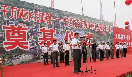 亞泰集團(tuán)黑龍江千萬(wàn)噸水泥工程——安達(dá)首條100萬(wàn)噸水泥及深加工項(xiàng)目奠基儀式6月18日上午在安達(dá)市隆重舉行,亞泰集團(tuán)副總裁、總經(jīng)濟(jì)師王化民主持奠基儀式。
