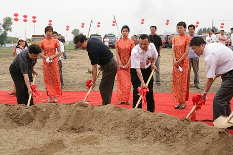亞泰集團(tuán)董事長(zhǎng)、總裁宋尚龍共同為安達(dá)首條100萬(wàn)噸水泥及深加工項(xiàng)目奠基