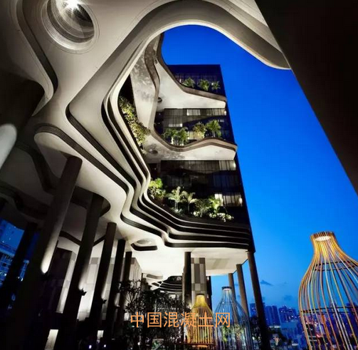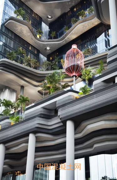 酒店樓高16層,12層高的塔樓坐落在5層高裙樓樓頂上,塔樓每隔三層懸挑一座空中花園。裙樓被波狀預制混凝土包圍,稱為地形建筑、會呼吸的建筑。