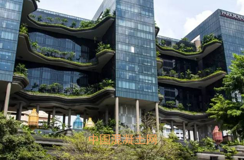 新加坡的建筑事務所WOHA一直是綠色城市的倡導者,將綠色從自然引入城市。PARKROYALon Pickering被設計成為一個率容量倍增的花園酒店,美麗的熱帶花木與棕櫚樹點綴著空中花園。如此繁榮茂盛的綠色與周邊臨近公園連成一氣,形成連續(xù)的綠色景觀,處處綠蔭,漫漫流水,潺潺響。