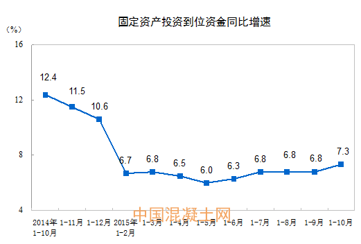 從到位資金情況看,1-10月份,固定資產(chǎn)投資到位資金471059億元,同比增長7.3%,增速比1-9月提高0.5個百分點。其中,國家預(yù)算資金增長21.1%,增速提高0.6個百分點;國內(nèi)貸款下降4.5%,降幅擴大0.1個百分點;自籌資金增長8.5%,增速提高0.3個百分點;利用外資下降28.6%,降幅擴大2.4個百分點;其他資金增長8.7%,增速提高1.8個百分點。