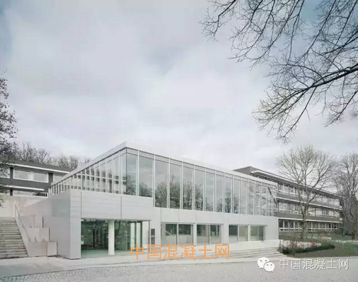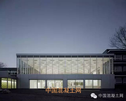 校園加建的建筑部分,集合樂圖書館,多功能活動大廳。采用比一般混凝土更輕,更柔美的CEM-III混凝土。屋面的圓形天窗漫射的自然光,使這種大面積裸露的材質更加輕柔皎潔。