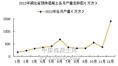 2012水泥市場的狀態(tài)持續(xù)低迷,加上房地產(chǎn)、高鐵建設(shè)量下滑等因素,對混凝土市場造成了一定的影響,但湖北省預(yù)拌混凝土供應(yīng)量仍有所增長。