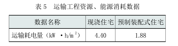 資源消耗包括預制構件生產和施工現場混凝土的消耗量;水資源消耗量包括現澆混凝土和預制構件的養護用水量以及施工機具的清洗用水量。