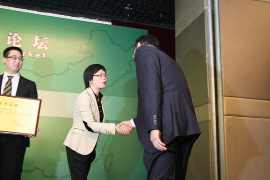 科之杰新材料集團(tuán)總經(jīng)理麻秀星博士為十強(qiáng)企業(yè)頒獎(jiǎng)