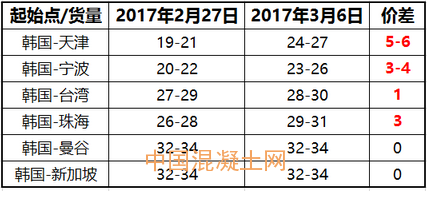 韓國至中國海運費上調,但韓國至曼谷、韓國至新加坡等周邊國家運費暫無明顯波動。