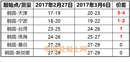 韓國至中國部分液體化工海運費,進入2017年價格整體歷經幾次波動。在2017年初大約有4-6美元/噸的漲價,但中國春節過后,受港口發貨貨源較少等影響價格回調至去年底左右的水平。至3月份韓國——中國海運費用再度上調,幅度基本在4-6美元/噸。