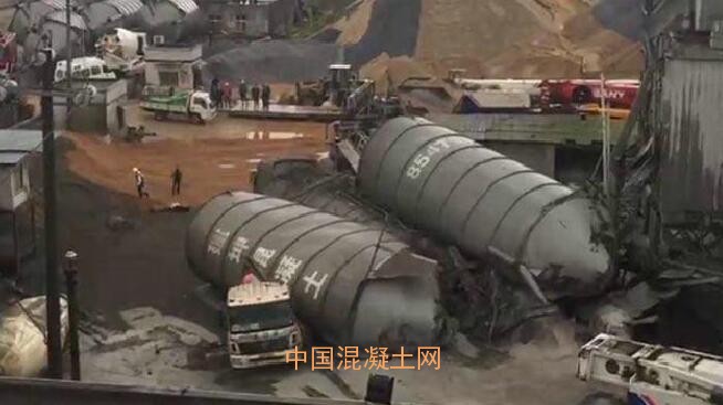 目擊者楊喜運(yùn)介紹,他和其他5名同事正在工廠的4號(hào)生產(chǎn)線工作,自己的工作是把水泥攪拌機(jī)清洗干凈。14:35,他把手里的活干完,回到20米外的宿舍里。“屋外突然傳來‘砰’的一聲巨響。”楊喜運(yùn)說,此時(shí)生產(chǎn)線上的四個(gè)混凝土儲(chǔ)存罐全部倒塌,發(fā)生炸裂,周邊頓時(shí)彌漫著水泥灰塵,一名開水泥罐車的司機(jī)從揚(yáng)塵中跑出,身上沾滿泥漿。