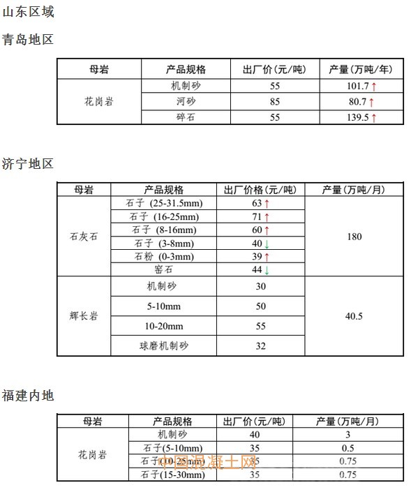 5月份全國砂石骨料價格和產量