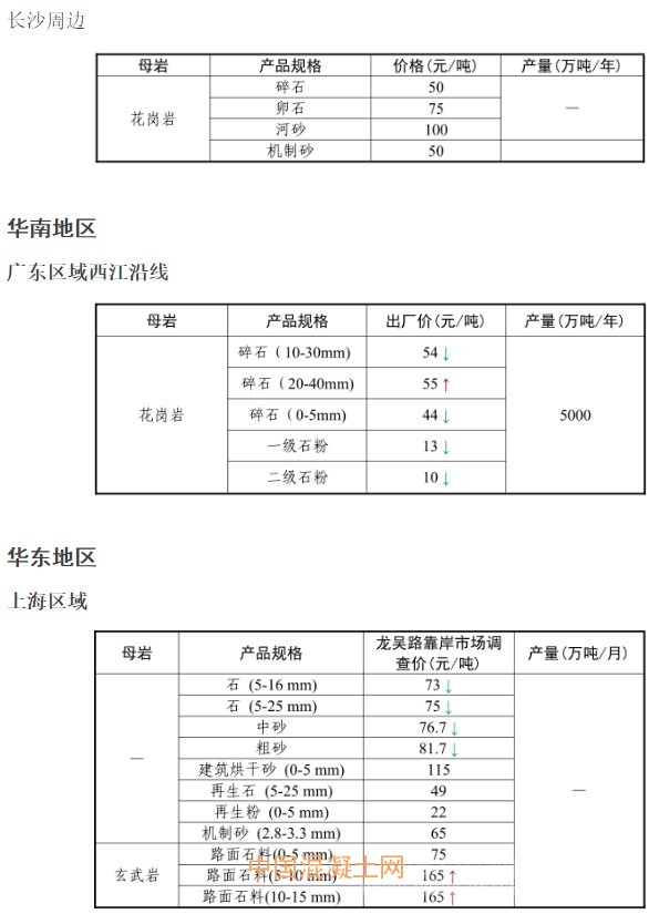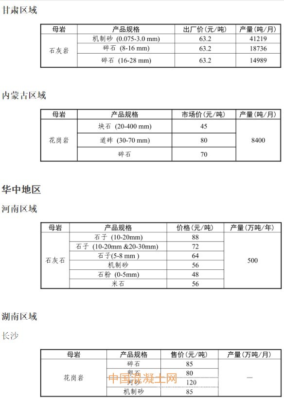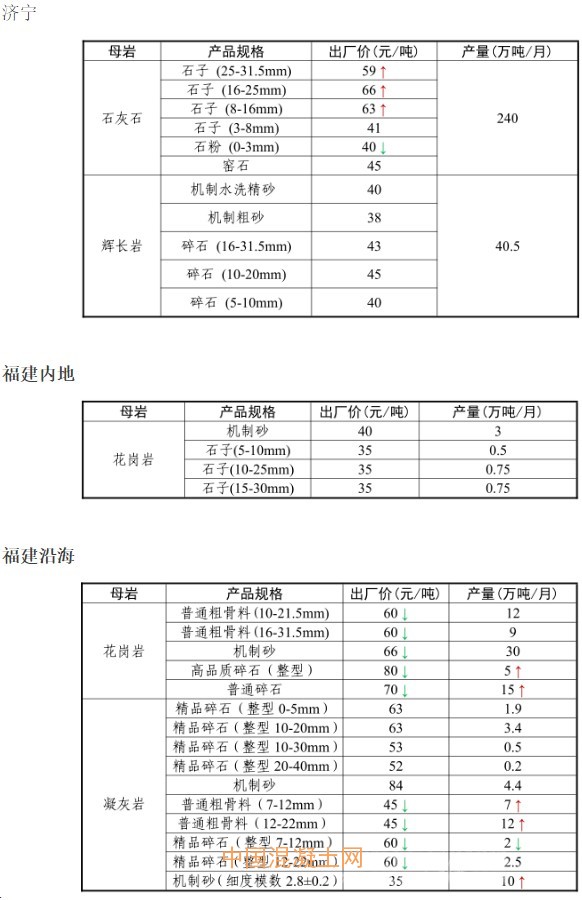 2017年7月份全國(guó)砂石骨料價(jià)格和產(chǎn)量