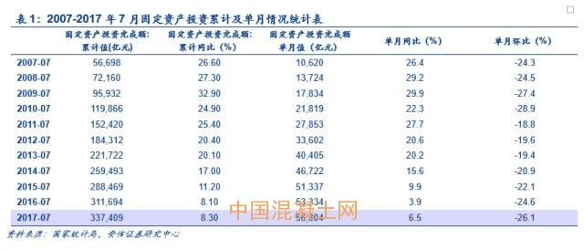國家統計局8月14日發布的數據顯示,2017年1-7月全國累計固定資產投資(不含農戶)完成額33.74萬億元,同比增長8.3%,低于1-6月份8.6%的同比增長率,但高于2016年全年8.14%的同比增長率,高于2016年1-7月份8.1%的同比增長率。