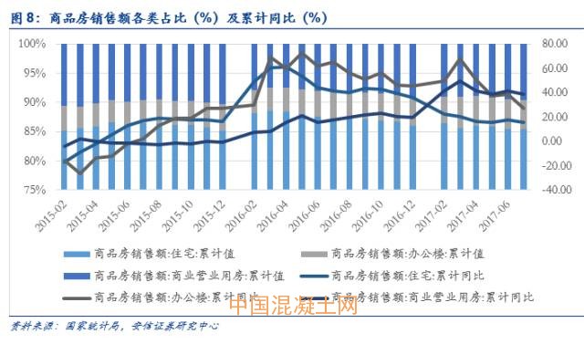 1-7月份,商品房銷售面積86351萬平方米,同比增長14%,增速比1-6月份下降2.1個百分點。其中,住宅銷售面積增長11.5%,辦公樓銷售面積增長33.7%,商業營業用房銷售面積增長29.4%。商品房銷售額68461億元,增長18.9%,增速降低2.6個百分點;住宅銷售額增長15.9%,辦公樓銷售額增長27.4%,商業營業用房銷售額增長38.7%。