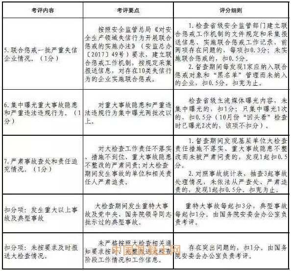 (四)各督查組要把安全生產(chǎn)大檢查工作考評納入綜合督查統(tǒng)籌安排,按照《安全生產(chǎn)大檢查工作考核方案》(附件2見下圖或下載附件),從被督查地區(qū)中選擇部分基層政府和企業(yè)開展抽查檢查進行考評。