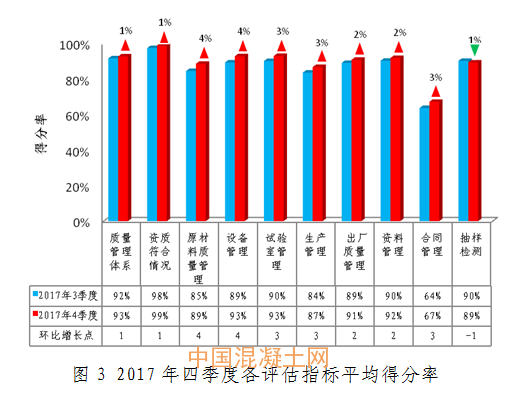 一是四季度北京市正常生產(chǎn)的預(yù)拌混凝土企業(yè)126家,全市企業(yè)平均分90.68,整體檢查情況良好,混凝土試塊(拌合物)抽檢得分率達(dá)到98.7%,全市預(yù)拌混凝土質(zhì)量總體受控;二是原材料抽檢得分率較上季度有小幅下降,需進(jìn)一步加強(qiáng)監(jiān)管;三是企業(yè)之間得分差距進(jìn)一步縮小,全市預(yù)拌混凝土企業(yè)質(zhì)量管理水平整體呈上升趨勢(shì)。