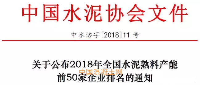 中國水泥協(xié)會根據(jù)協(xié)會產(chǎn)能數(shù)據(jù)庫,并與各省市自治區(qū)水泥(建材)協(xié)會數(shù)據(jù)核實后。現(xiàn)將“2018年全國水泥熟料產(chǎn)能前50家企業(yè)排名”向社會公布。