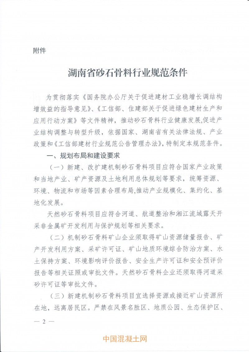 2018年3月2日,湖南省經信委《關于印發〈湖南省砂石骨料行業規范條件〉的通知》(湘經信原材料[2018]10號,以下簡稱《規范條件》)。該《規范條件》作為全省規范性文件已報省人民政府登記,經省政府法制辦審查并依法登記,統一登記號:HNPR—2018—05001。