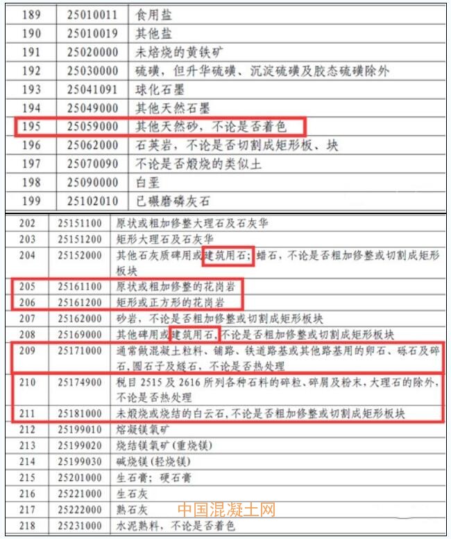 對美國持續違反國際義務對中國造成的緊急情況,為捍衛中方自身合法權益,中國政府依據《中華人民共和國對外貿易法》等法律法規和國際法基本原則,對原產于美國的5207個稅目約600億美元商品,加征25%-5%不等的關稅。其中多項商品涉及到砂石,均加征25%關稅,相關商品如下: