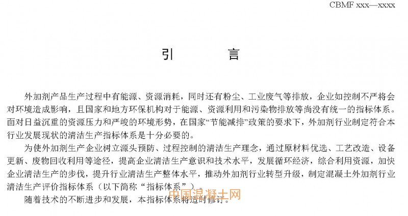 關于對《混凝土外加劑行業清潔生產評價指標體系》