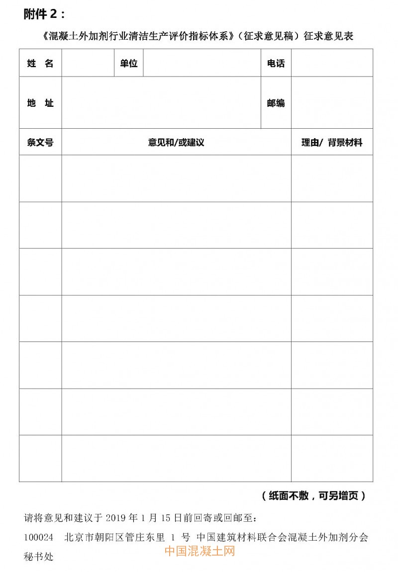 附件2:《混凝土外加劑行業清潔生產評價指標體系》征求意見表