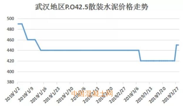 由圖中可以看出,進入2019年武漢地區水泥價格累計下調3輪,累計幅度為60-70元/噸,近兩日水泥價格開始上調。