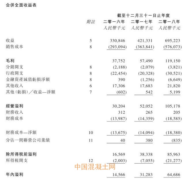 (預拌混凝土滲透率情況 資料來源:招股書)