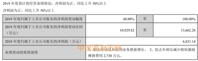在2019年第三季度季報(bào)中,紅墻股份預(yù)計(jì)2019年歸屬于上市公司股東的凈利潤變動(dòng)區(qū)間為1.09億元至1.37億元,同比增長(zhǎng)60%至100%。2018年該公司歸屬于上市公司股東的凈利潤為6831.14萬元。業(yè)績(jī)變動(dòng)原因是外加劑業(yè)務(wù)銷量增和減少股權(quán)激勵(lì)攤銷費(fèi)用 2730 萬元。