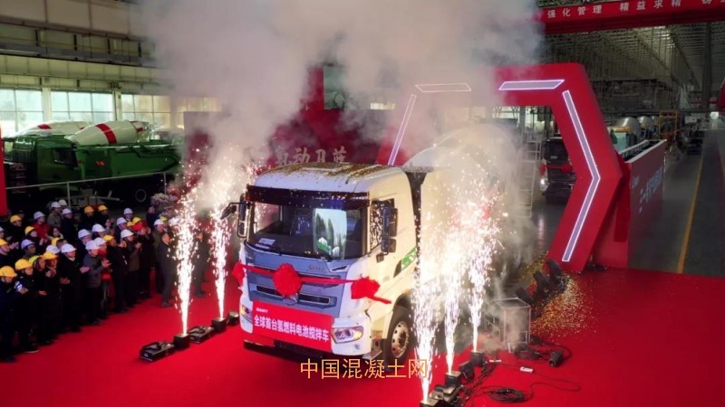 儀式上,三一全球首臺氫燃料電池攪拌車和三一首臺氫燃料電池自卸車揭開神秘面紗,駛入舞臺,這將是具有劃時代意義的新產品。