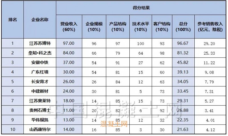 部分企業(yè)因數(shù)據(jù)提供不完整、不及時(shí),暫未被列入其中,望相關(guān)企業(yè)在下次評選中積極踴躍參與,共同推動外加劑行業(yè)的繁榮與發(fā)展。由于時(shí)間有限,本次評選難免有所疏忽,若其中數(shù)據(jù)有所偏差,請聯(lián)系我們!