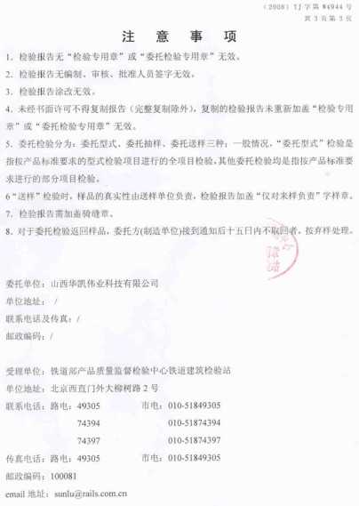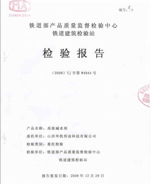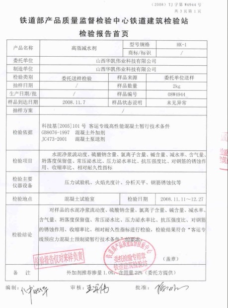 山西華凱偉業科技有限公司近期通過第十一批鐵道部認證,成為鐵道部認證的聚羧酸外加劑企業,在眾多同行企業中贏得鐵道客運專線項目聚羧酸外加劑供貨資格。