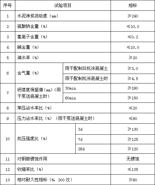 產品主要執行GB8076-1997《混凝土外加劑》標準及鐵道部科技基[2005]101號《客運專線高性能混凝土暫行技術條件》和科技技[2006]104號《客運專線高性能混凝土用外加劑產品檢驗細則》,以及JG/T223-2007《聚羧酸系高性能減水劑》標準,各項性能指標均達到上述標準要求。