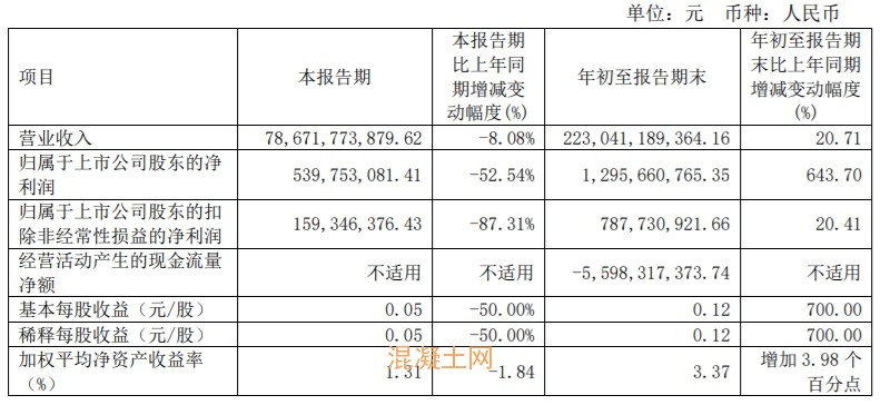 10月30日,上海建工集團(tuán)股份有限公司發(fā)布了2023年第三季度業(yè)績(jī)報(bào)告。第三季度,上海建工營(yíng)業(yè)收入為786.72億元,同比下降8.08%;歸屬于上市公司股東的凈利潤(rùn)為5.4億元,同比下降52.54%。前三季度,上海建工營(yíng)業(yè)收入為2230.42億元,同比上升20.71%;歸屬于上市公司股東的凈利潤(rùn)為12.96億元,同比上升643.7%。