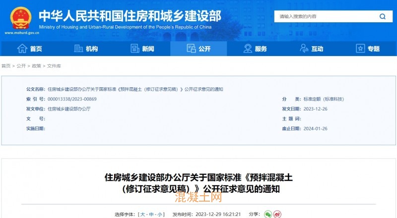 根據(jù)《國(guó)家標(biāo)準(zhǔn)化管理委員會(huì)關(guān)于下達(dá)2022年第二批推薦性國(guó)家標(biāo)準(zhǔn)計(jì)劃及相關(guān)標(biāo)準(zhǔn)外文版計(jì)劃的通知》(國(guó)標(biāo)委發(fā)〔2022〕22號(hào)),我部組織中國(guó)建筑科學(xué)研究院有限公司等單位修訂了國(guó)家標(biāo)準(zhǔn)《預(yù)拌混凝土》(見附件)。現(xiàn)向社會(huì)公開征求意見。有關(guān)單位和公眾可通過以下途徑和方式提出反饋意見: