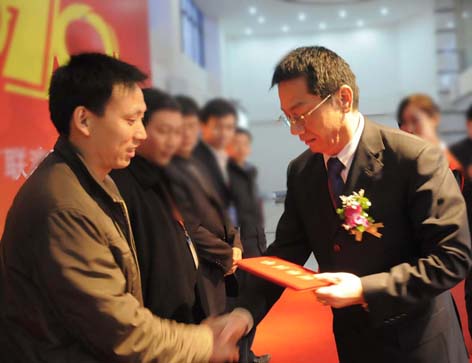 隨后,職工代表董希偉、毛洪喜等同志也上臺發言。接著由總經理徐建峰宣讀了“關于表彰2009年度公司先進員工和集體的決定”,由公司領導現場為先進人員和集體頒發了榮譽證書和獎金,并合影留念。大會在“眾人劃漿開大船”的歌聲中落下帷幕。
