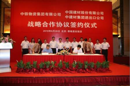6月28日,中國建材股份有限公司、中建材進出口公司與中鐵物資集團公司簽署戰略合作協議。根據協議,三家公司將在水泥及其他建材產品購銷、境外項目、進出口貿易、市場信息與技術交流等方面尋找合作機會,推進項目合作。