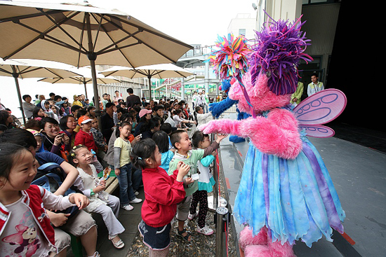 這場沿著河流的發現之旅叫《魔法地圖探險》,是由“芝麻街”和“巴斯夫小小化學家”聯合呈現的兒童劇,活動時間為2010年5月1日至10月31 日。截止8月底,已經有超過7 萬名游客觀看了這一劇目。