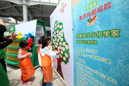 演出中,風靡全球的教育節目《芝麻街》中的大明星們帶來了一連串美妙的舞蹈和歌唱,同時還結合了一個互動環節,邀請船塢劇場的小觀眾登臺,參與由“巴斯夫小小化學家”帶來的互動化學實驗“污水變清”,一起探索水循環利用的奧妙。這個實驗幫助孩子們了解清潔水資源對于全世界的人類和動植物的重要性。目前,已經有來自近 30個省份(包括省、自治區、直轄市)和海外的1500多名兒童成功完成了該實驗。在這些小科學家中約有44%來自上海。